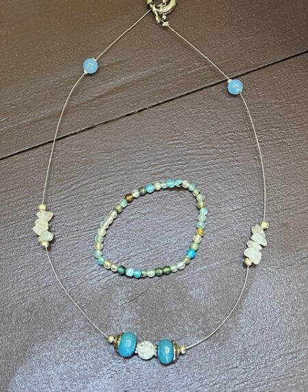 Chrysokoll Kette und Armband, schwarzer Turmalin, Bergkristall, Perlen, Schmuck Set69,90 €