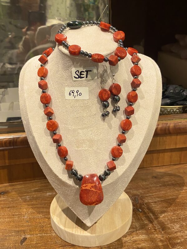 Koralle und Hämatit, beide Steine in diesem Schmuck Set, sind kraftvolle Schutzsteine für das Wurzel Chakra. Im Wurzel Chakra finden wir unsere Kraft für Erdung, Lebenskraft, Freude und Energie. Koralle und Hämatit fördern nun unsere emotionale Stärke, Erdung, Mut, Schutz, Selbstvertrauen, Konzentration, Stressabbau und Lebensfreude.