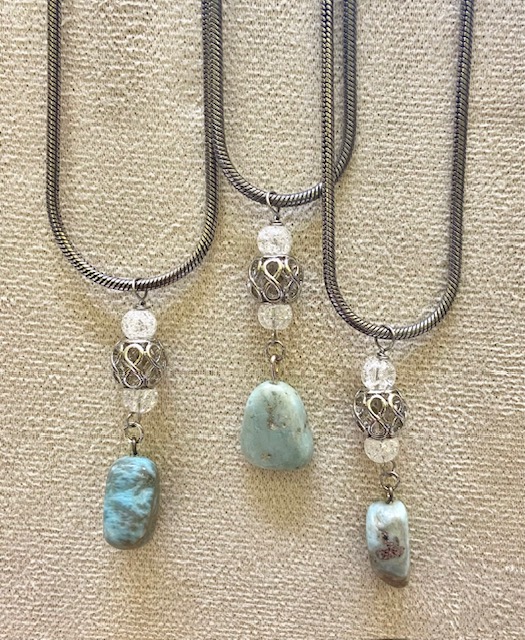 Schreibe die erste Bewertung für „Larimar Anhänger mit Bergkristall und liegende Acht, Atlantis Steinschmuck mit Edelstahl Kette, Schmuck Set“