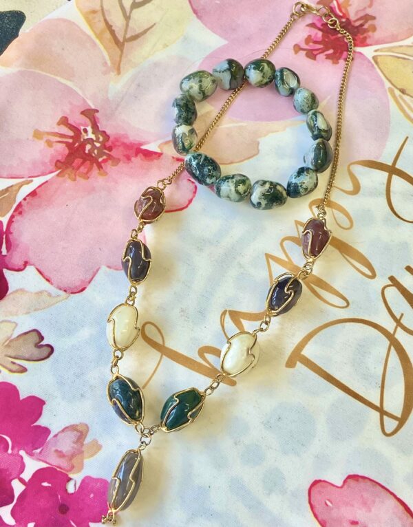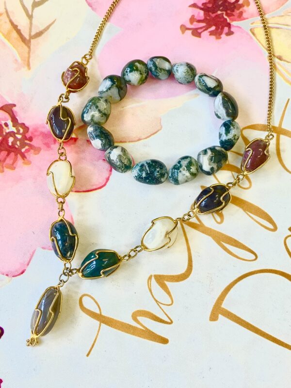 Schreibe die erste Bewertung für „Moosachat Armband und Achat Kette mit verschiedenen Achaten, für Ruhe, Liebe und Erdung“