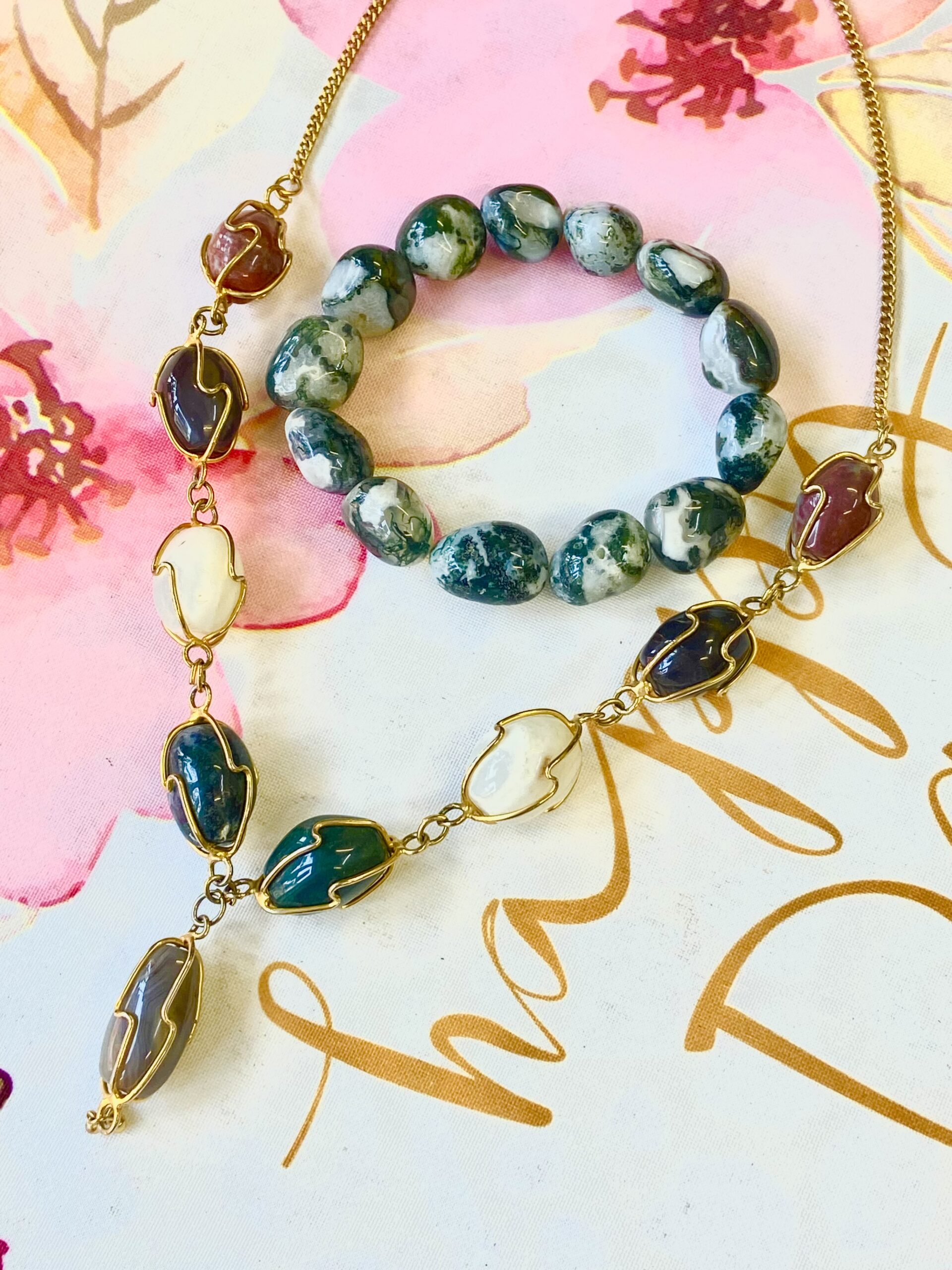 Moosachat Armband und Achat Kette mit verschiedenen Achaten, für Ruhe, Liebe und Erdung