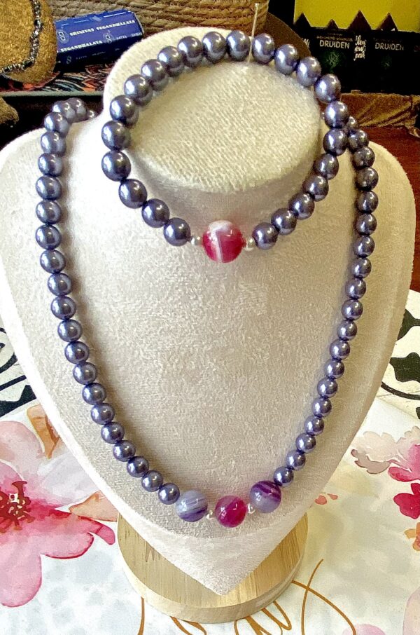 Perlen Set, Kette und Armband mit pink und violetten Achat Kugeln
