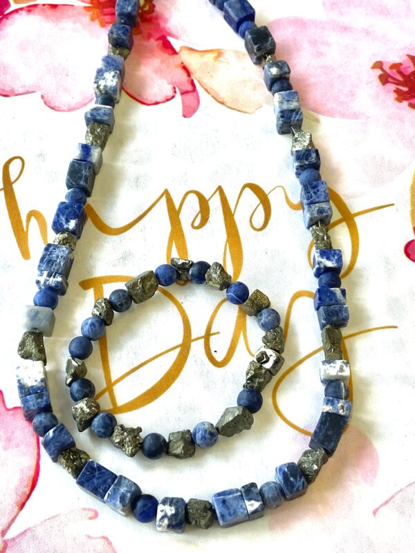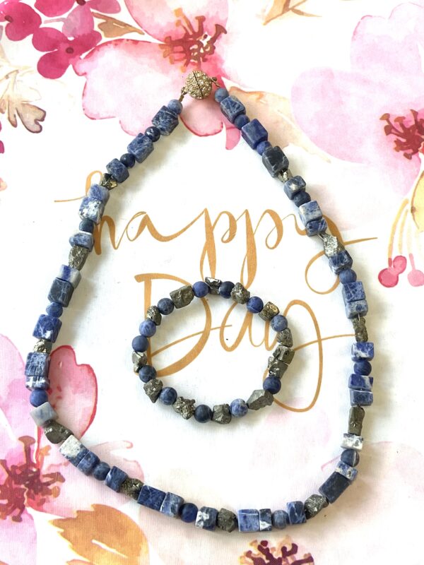 Pyrit und Sodalith Schmuck Set, für Ruhe und Erfolg, Kette und Armband