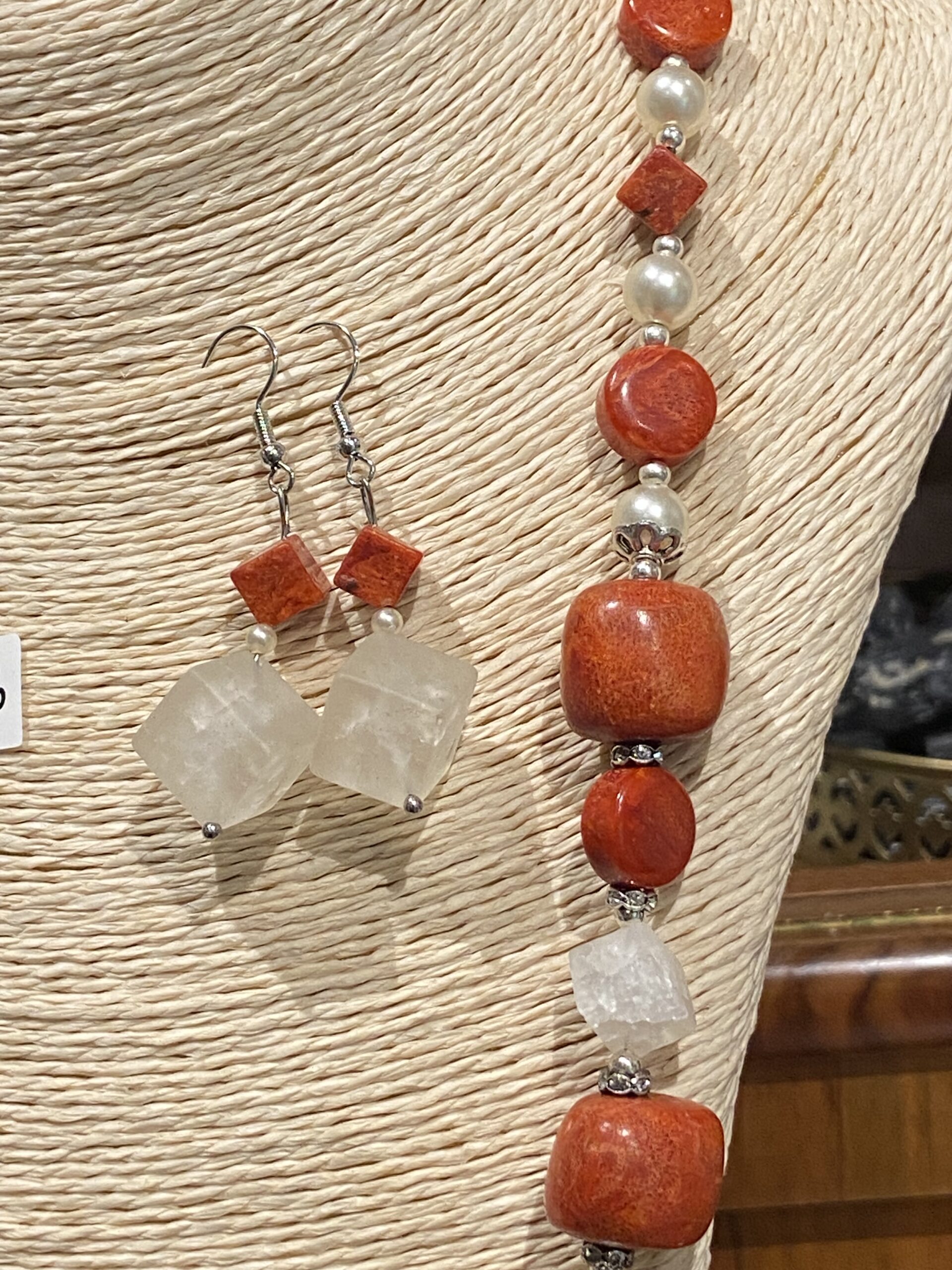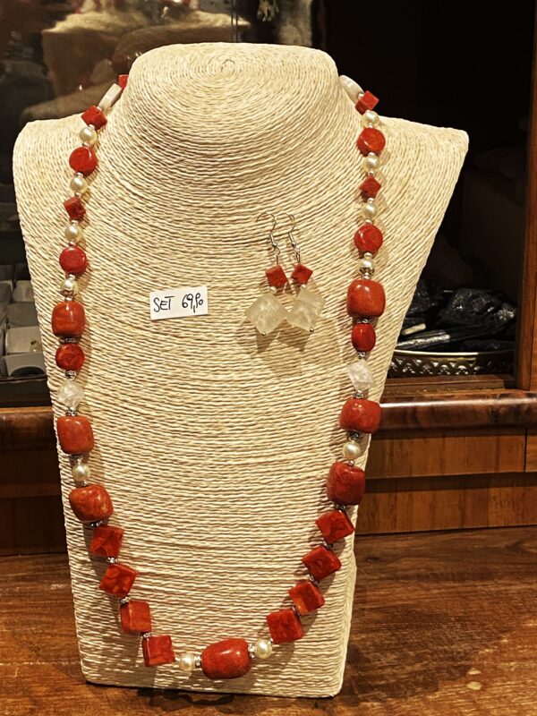 Schmuck Set mit Koralle und Bergkristall, Erdung, Mut und Lebensfreude