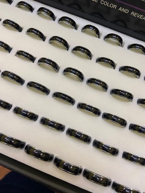 Stimmungsringe wechseln die Farbe nach Körpertemperatur. Ist die emotionale Regung eher traurig, wechselt die Farbe des Ringes in schwarz, bei Heiterkeit ist der Ring gelb und bei Gelassenheit lila. Aufgrund des Farbwechsels sind Stimmungsringe sehr beliebt. Ringgröße von 16 mm – 21 mm Durchmesser erhältlich. Mit Bedeutungs-Kärtchen.